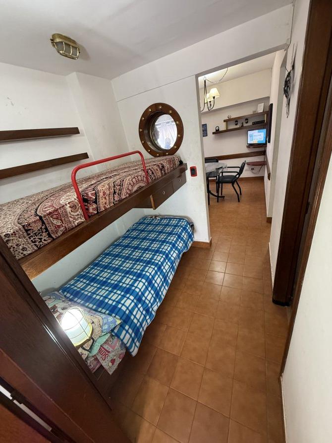1 dormitorio; cocina; living-comedor; baño; cuchetas en ambiente separado y balcon al frente con vista parcial al mar.
